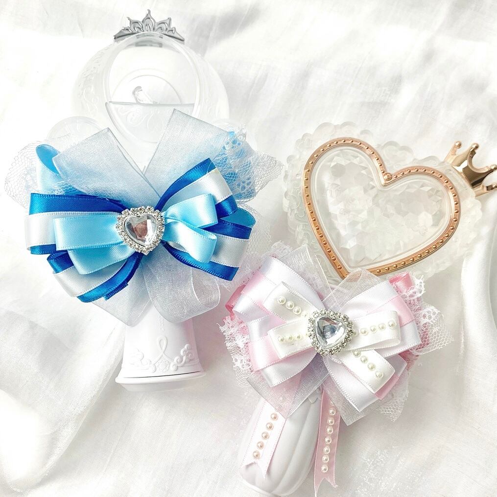 ペンラ&うちわリボン ※左のパール無しデザインとなります。 ペンラ、うちわどちらも取り付け可能です。 ※購入により1週間以内に到着をご希望のお客様は一度必ず事前にお問い合わせくださいませ。 ※商品到着後は一切のご返品ご返金ができかねますのでご了承くださいませ。 ※ペンライト自体はついてきませんのでお気をつけくださいませ。